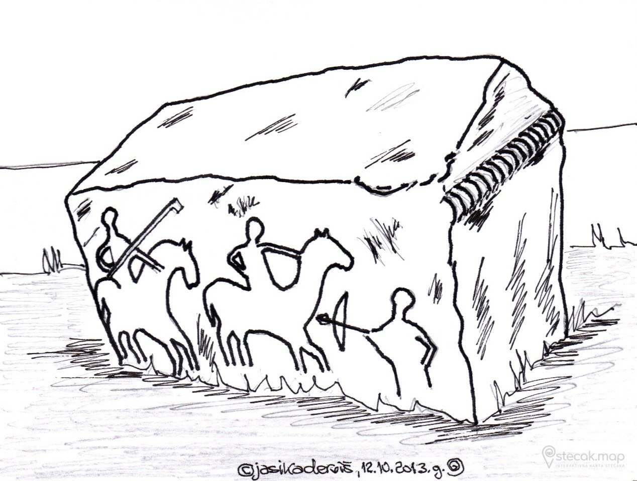 Detaljnim pregledom stećka br. 2, (2012. godine) sa njegove sjeverozapadne strane, ispod tordirane vrpce sam uočio vrlo slabe eventualne tragove natpisa, na šta asociraju mala udubljenja koja izgledaju kao da stoje u dva reda. Ovo je potrebno dodatno provjeriti. Ako se ispostavi da su ovo blijedi tragovi natpisa, onda bi to bilo novo otkriće i po mojim saznanjima, do sada jedini natpis na području općine Hadžići, koji se sačuvao do danas. Pozivam stručnjake da svakako obrate pažnju i daju svoje mišljenje! Ovo bi svakako bio novootkriveni natpis i isti želim na ovaj način da prijavim!