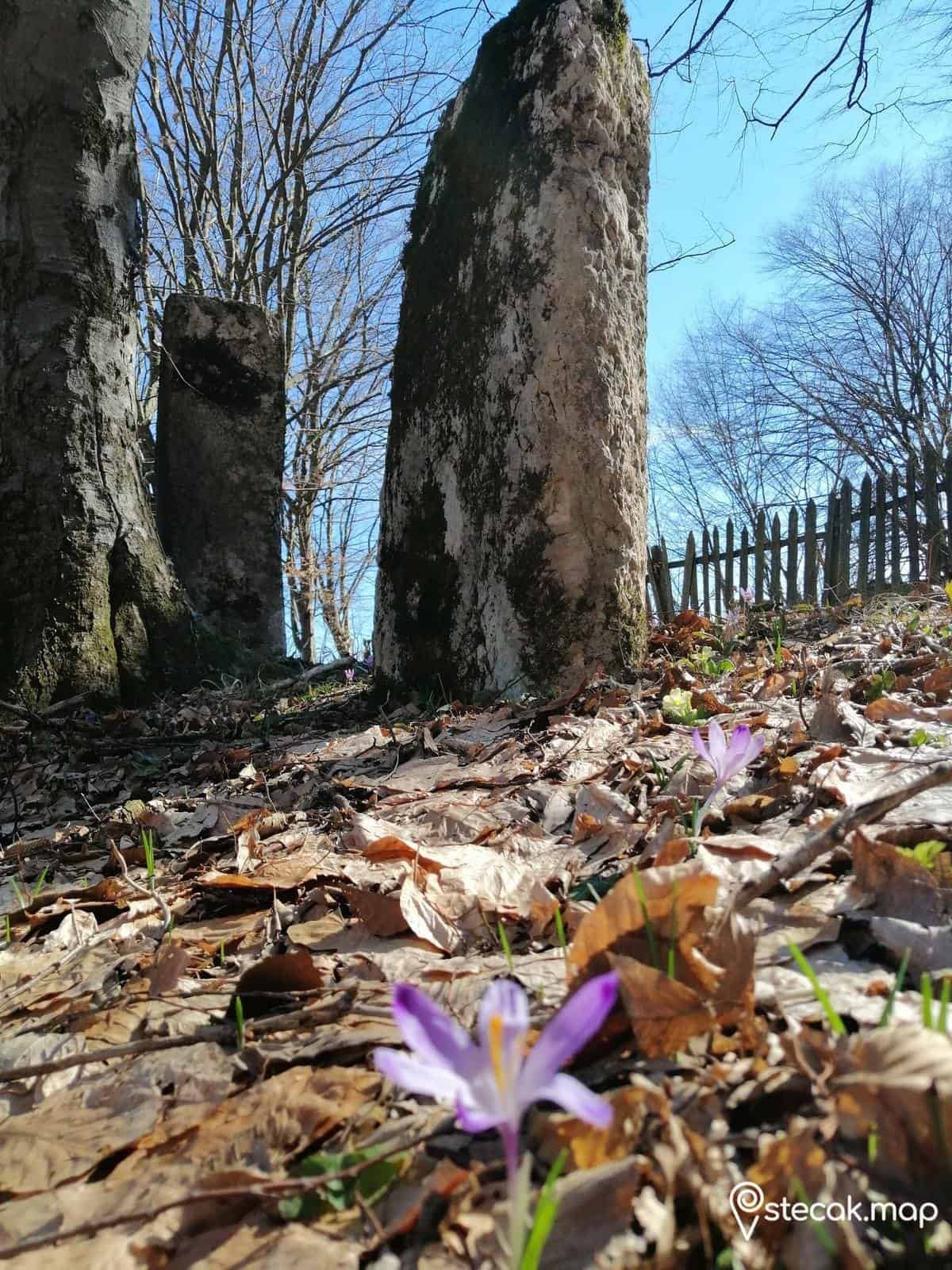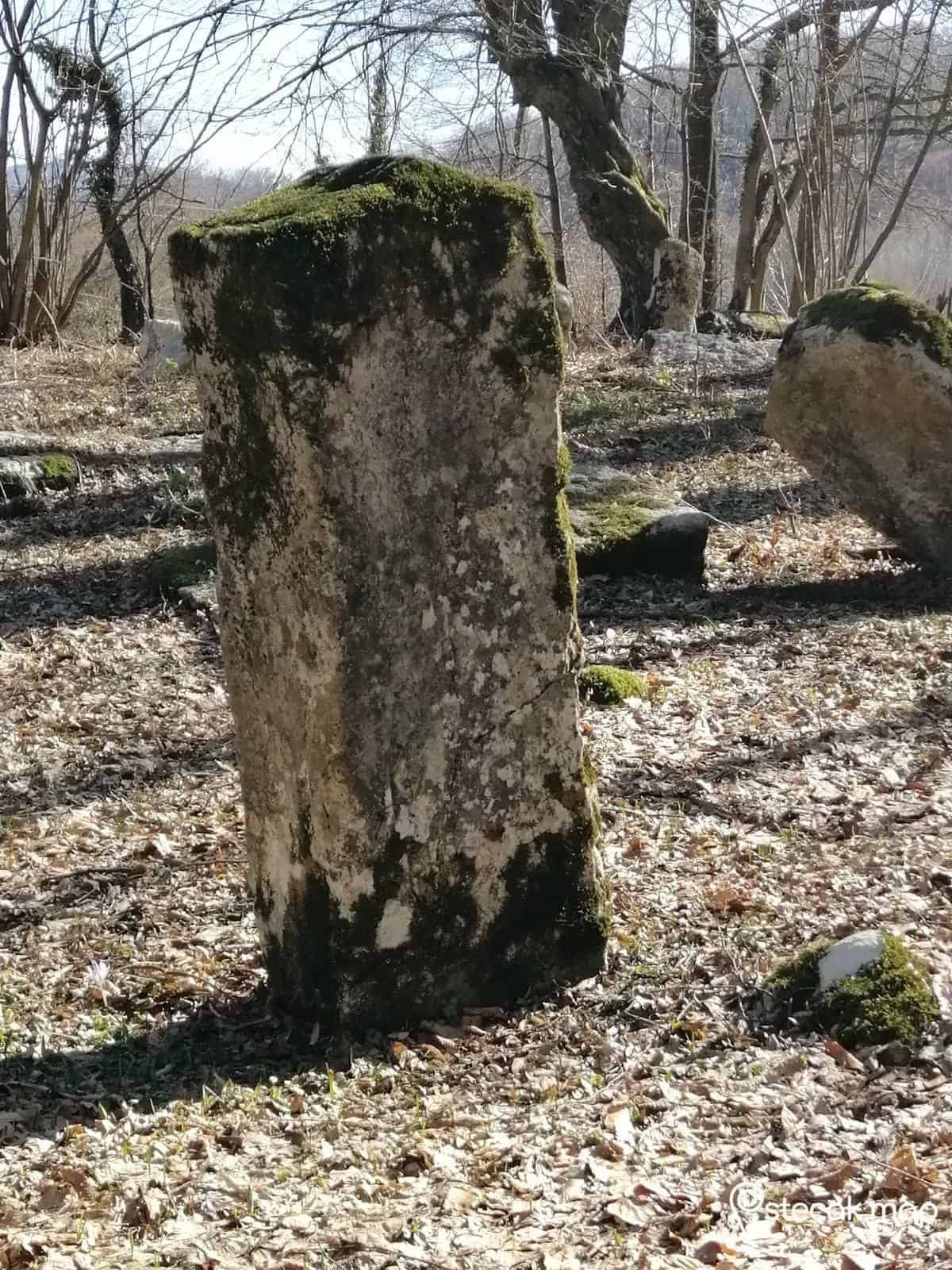 7 ukrašenih stećaka, sa motivima polumjesec i mač.
