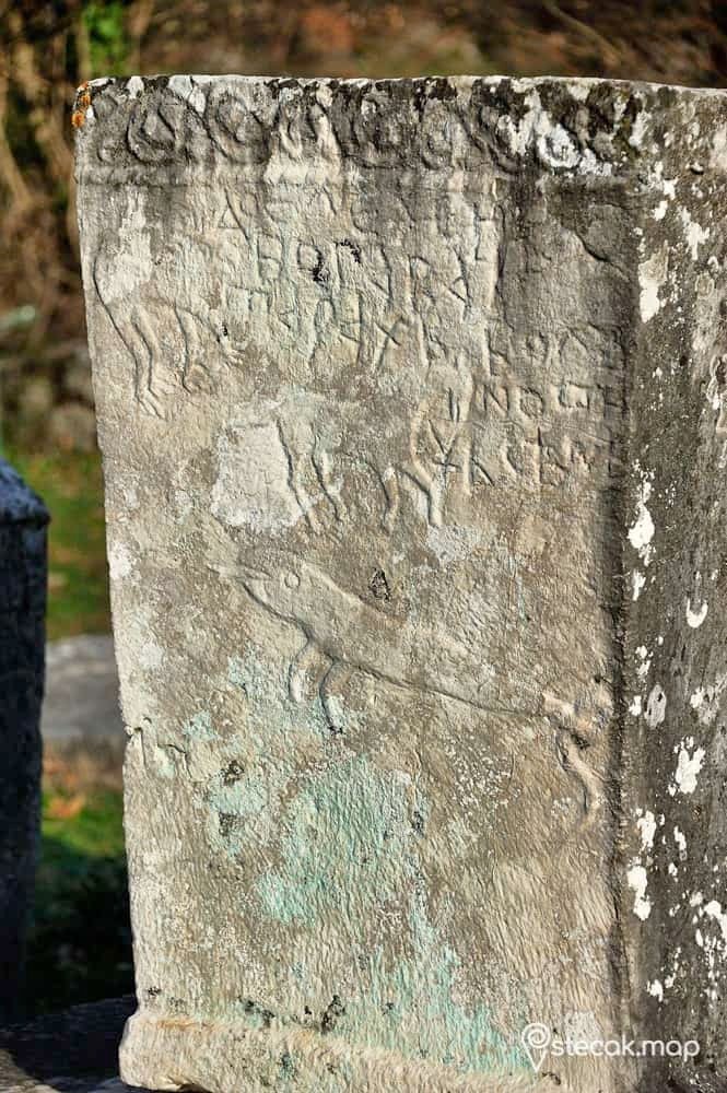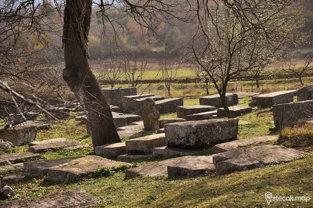 Jedna od bogatije ukrašenih nekropola, međutim natpisi su kratki i sadrže samo osnovne informacije. Spominje se nekoliko klesara: Grubač. Milić I Dragiša, te dijaci Radoja I Vuk.
