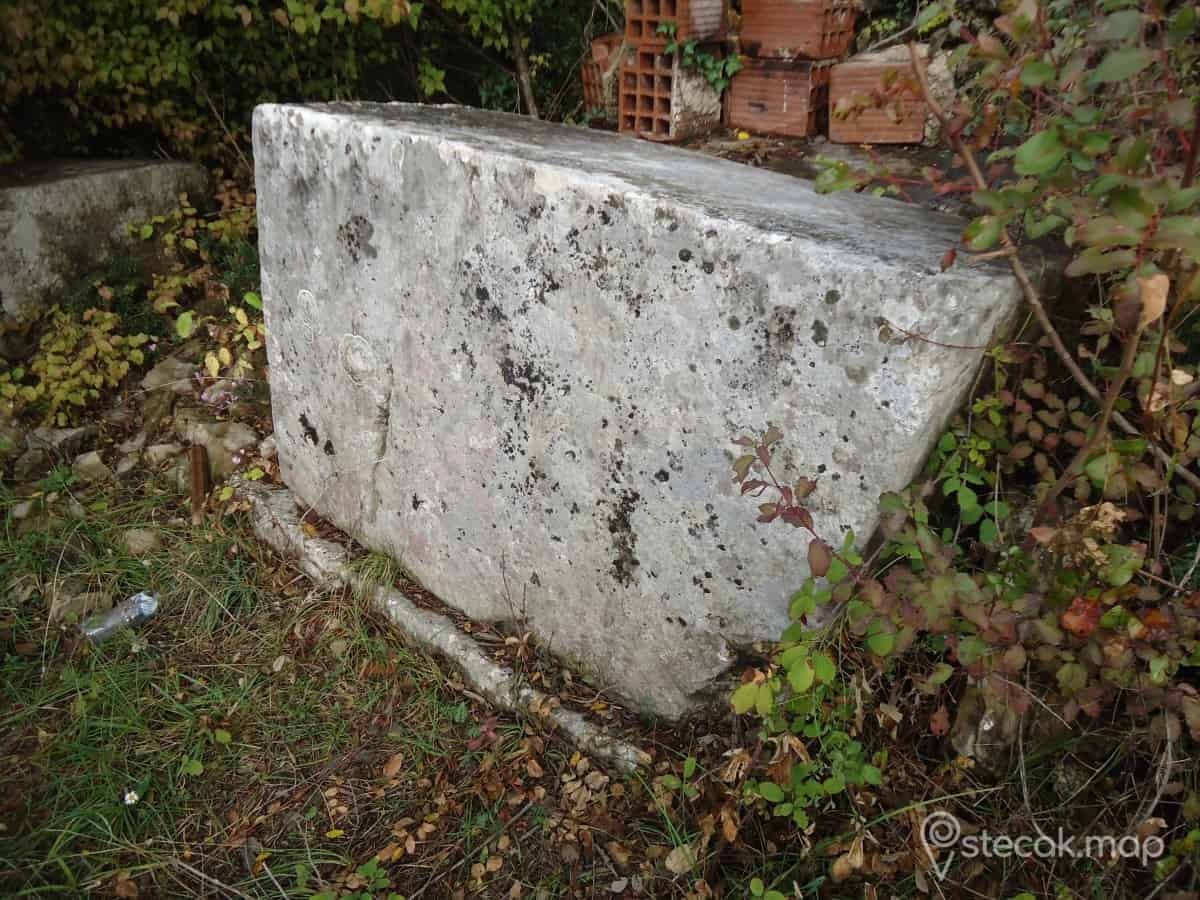 Natpis je vidljiv na vrhu stećka sa scenom dvoboja dvojice konjanika i strijelca sa lûkom i strijelom uklesanim sa bočne strane stećka.