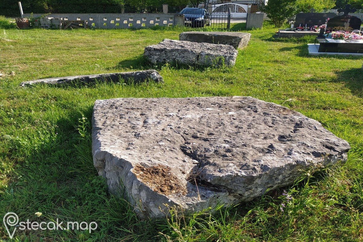 "U starom pravoslavnom groblju nalazi se nekropola sa šest stećaka, u obliku ploča i sanduka, orijentiranih Z-I; ukras: arkade.“