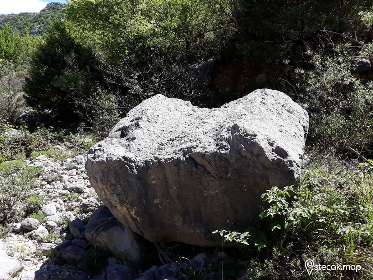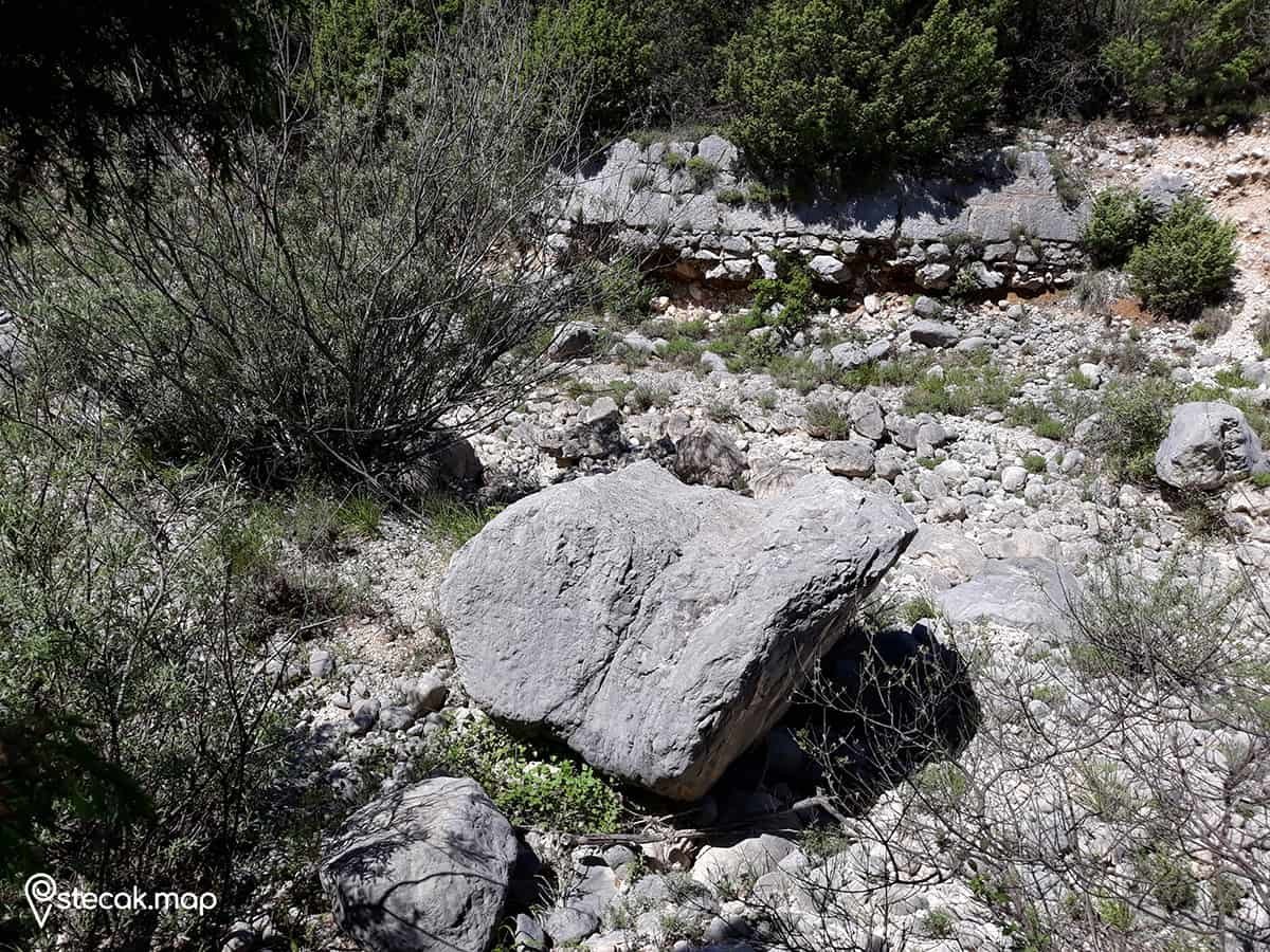 Stećak je prevrnut i oštećen djelovanjem vode te je teško prepoznati da se radi o stećku. Pastir koji tuda godinama prolazi rekao mi je da je stotine puta tuda prošao ali da nikad nije primjetio da se radi o stećku.