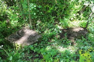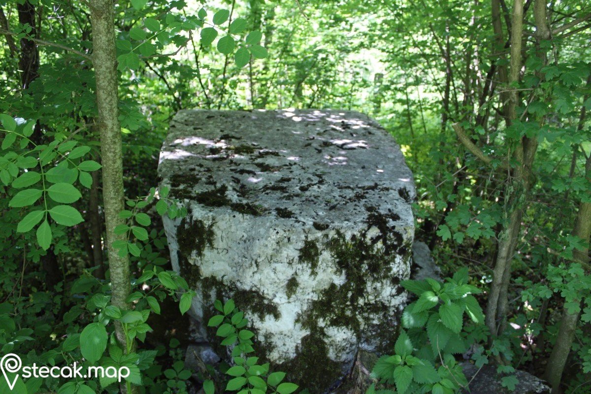 Jedan stećak u obliku ploče, polomljen po sredini, čuva motiv kruga sa ljudskom siluetom koja se nalazi unutar njega i jednu lijepo obrađenu rozetu.