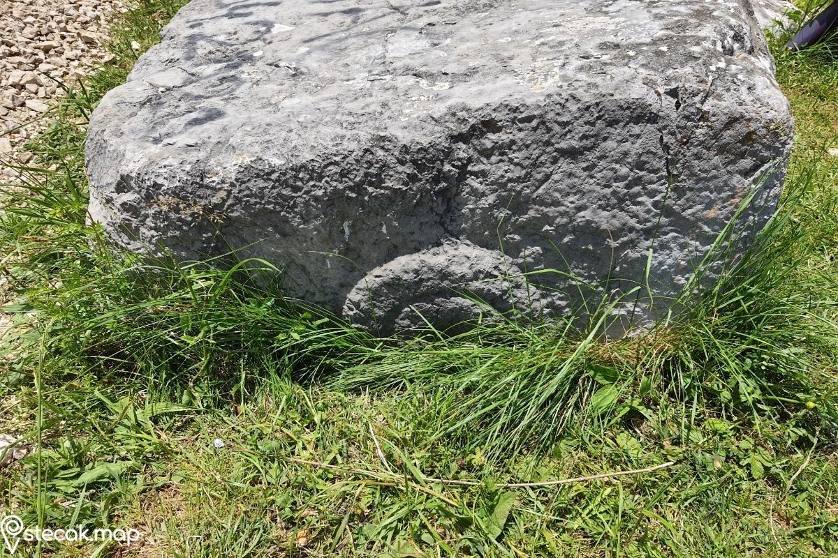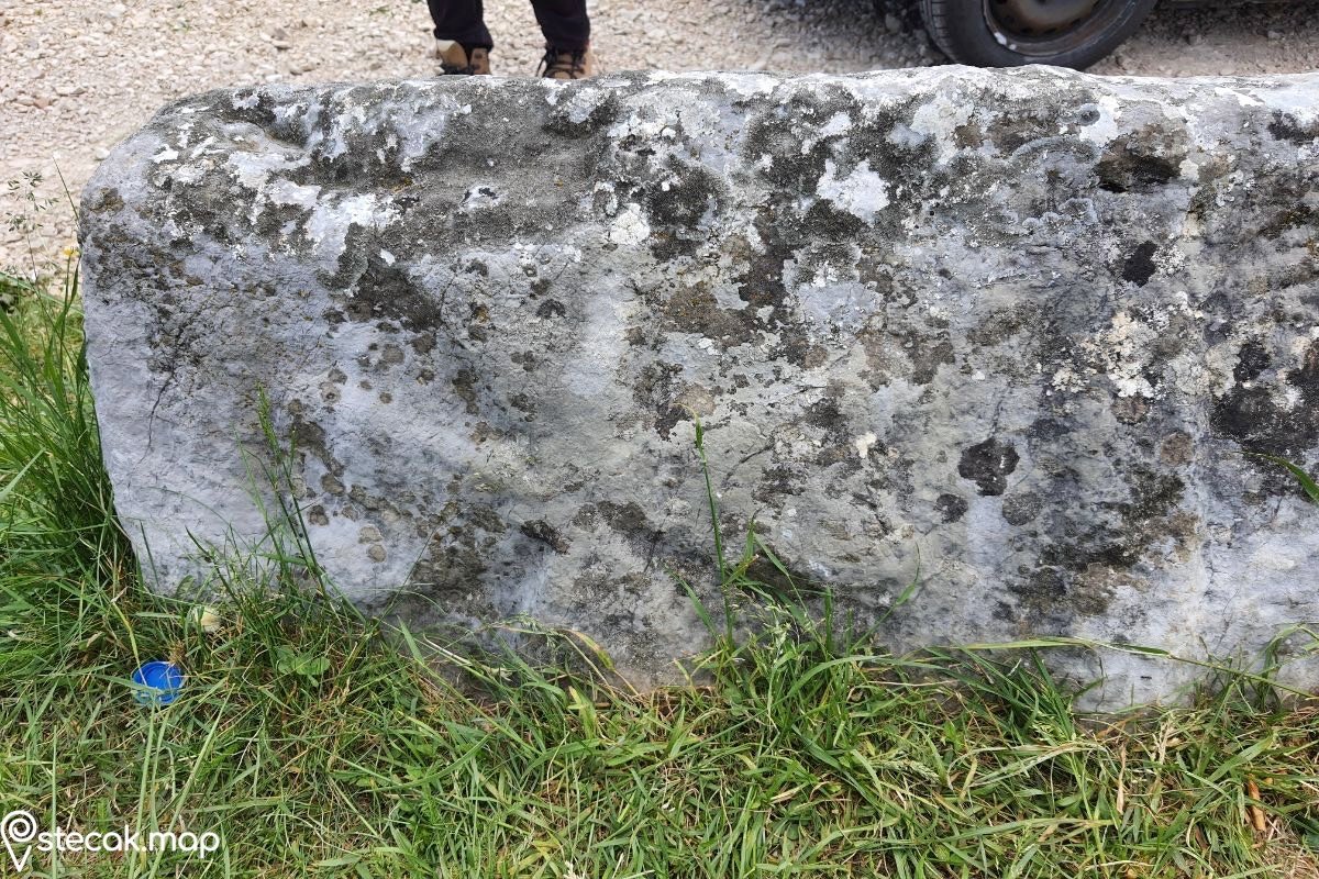 Jedan od stećaka (koji je oštećen) je prema literaturi ukrašen spiralom, krstom, polumjesecom i rozetom, međutim jasno se vidi samo krst, kroz rozetu prolazi pukotina, a sa uže strane se nazire neki kružni oblik sa krugom u krugu, ali je do pola utonuo u zemlju pa se ne vidi jasno, tako da pretpostavljamo da je to pomenuta spirala i/ili polumjesec.
