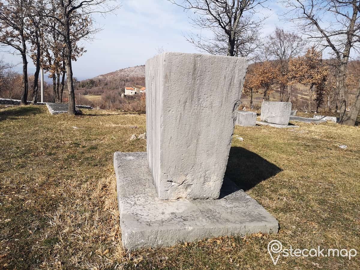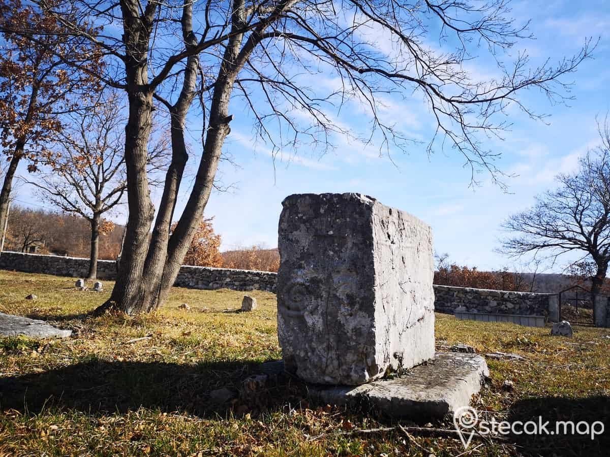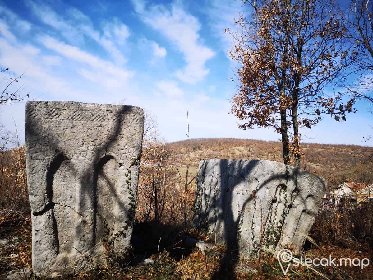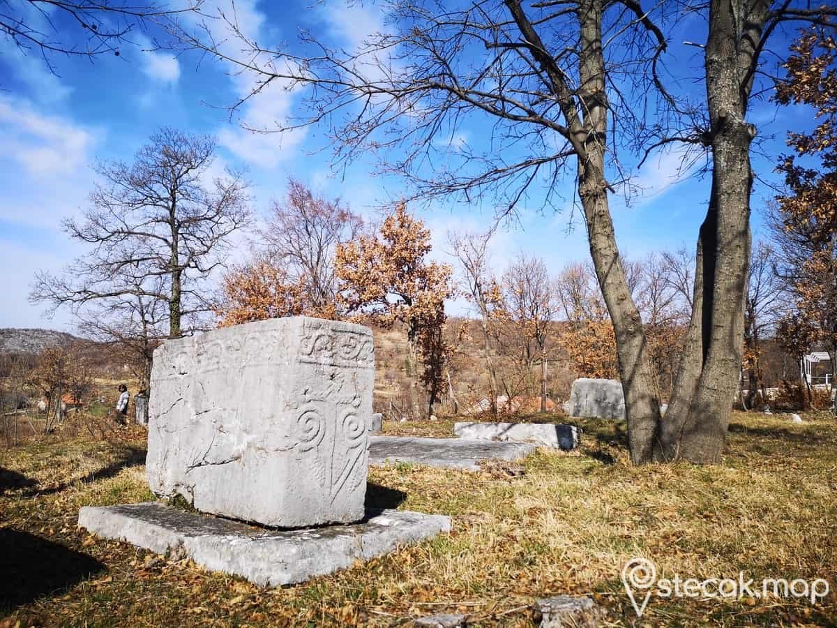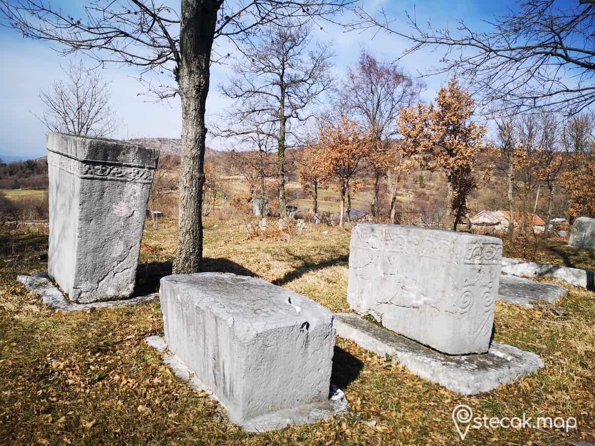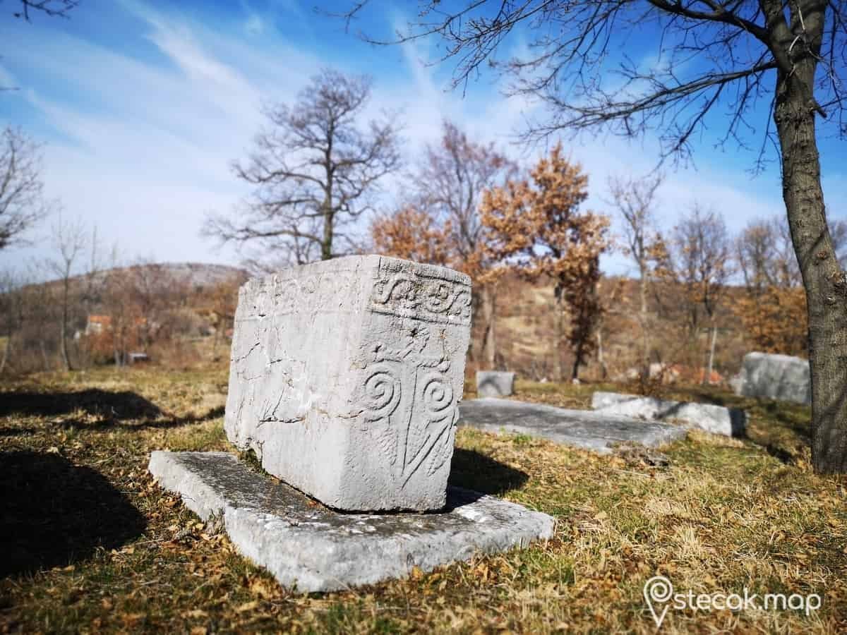 Na jednom od stećaka, sanduk na postolju, između motiva, u tri reda je ispisan natpis “ASE LEŽI VUKOSLAV CRIJEPOVIĆ”