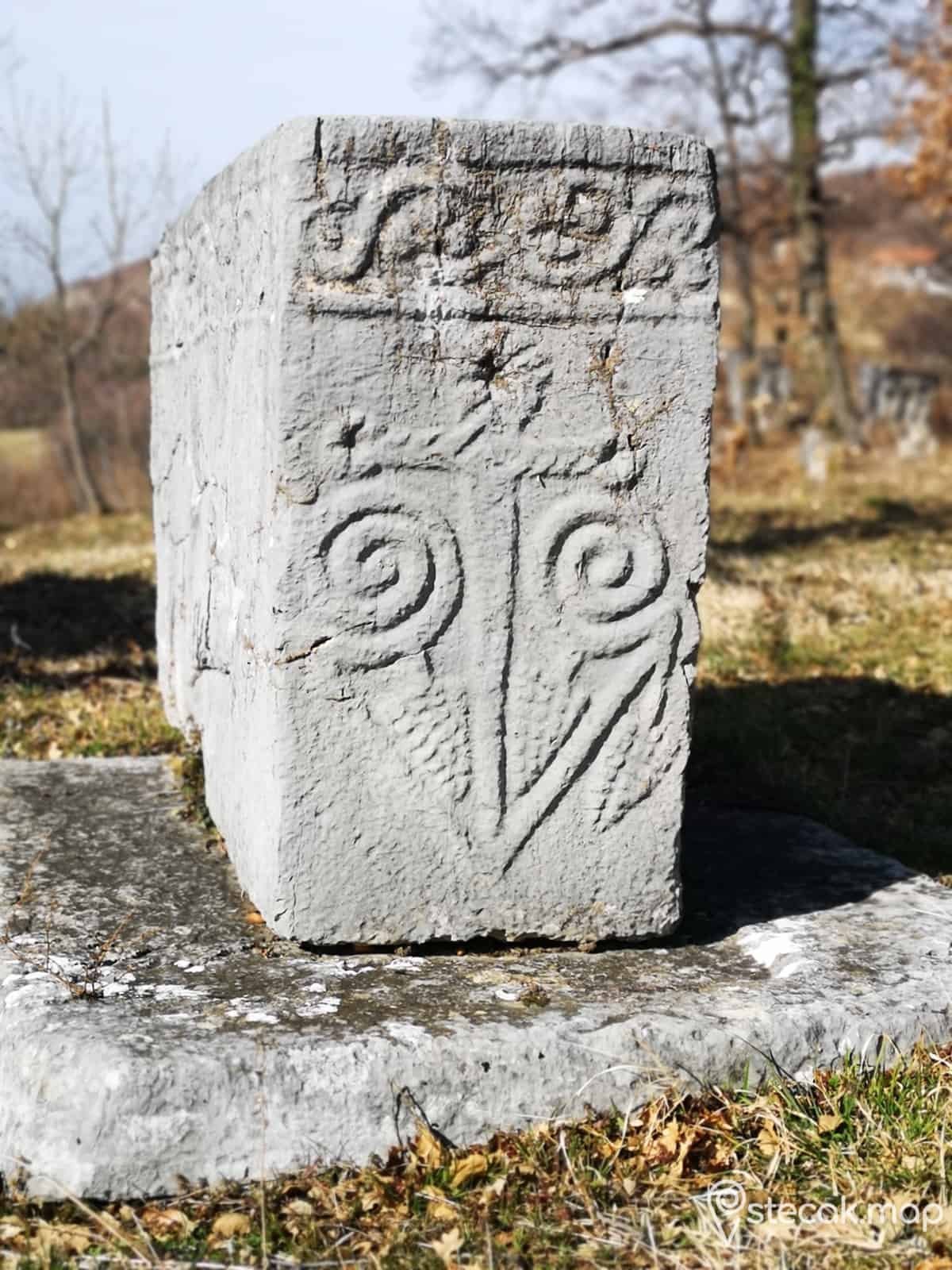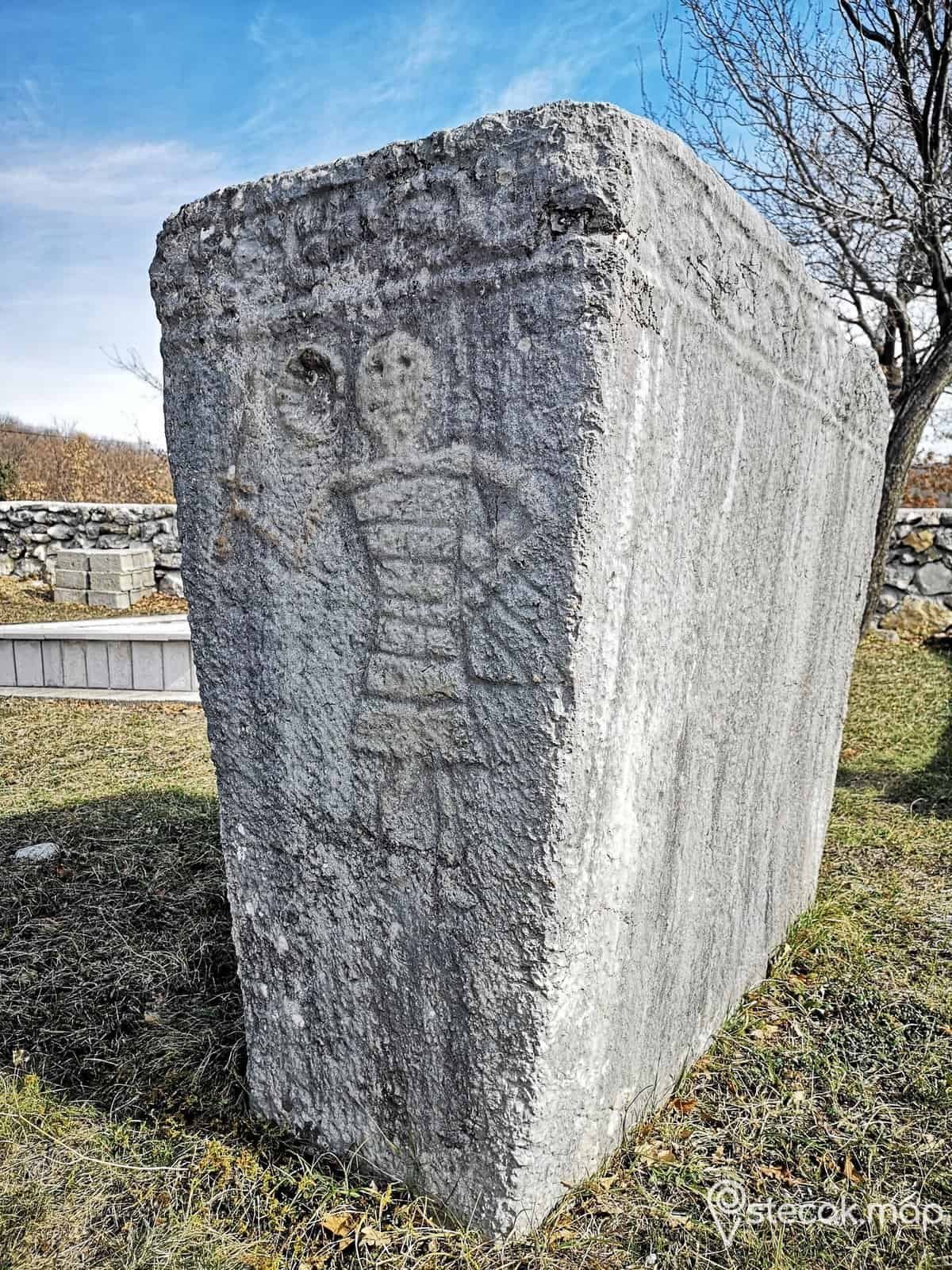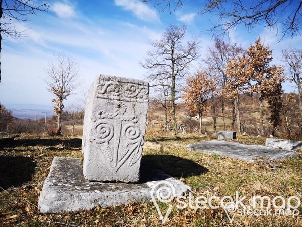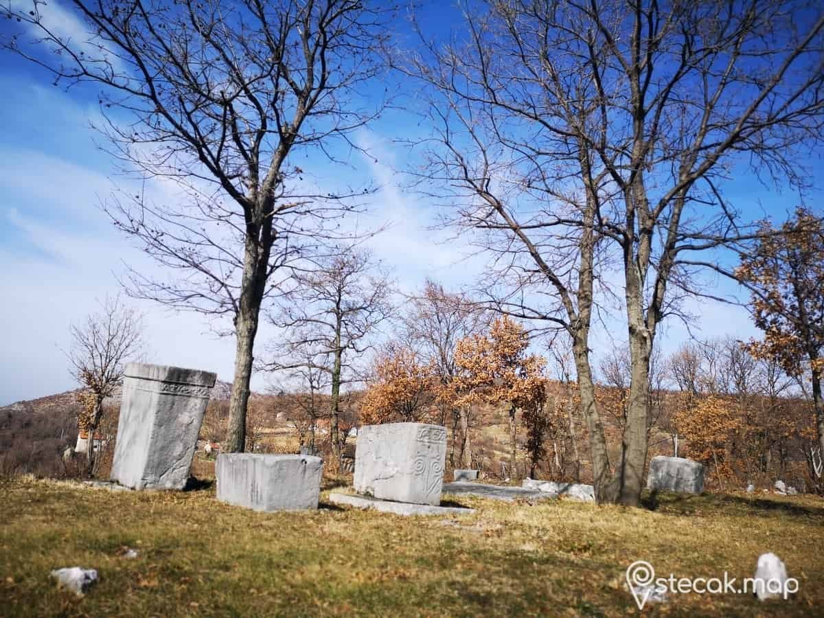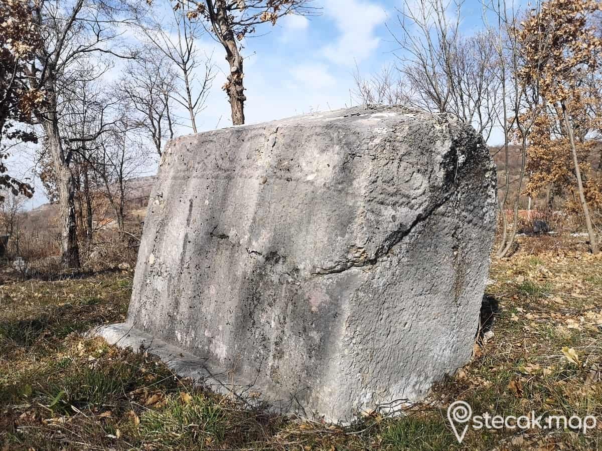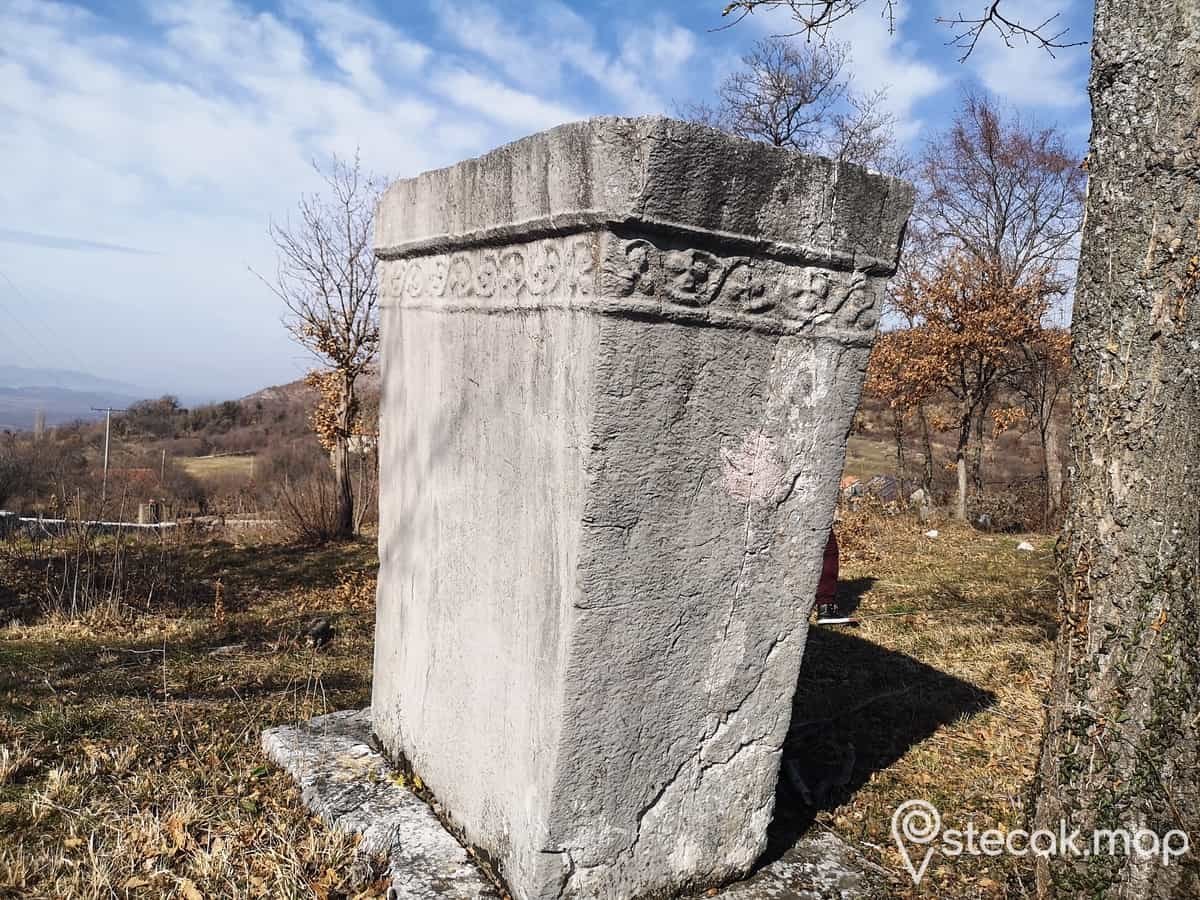 Na jednom od stećaka, sanduk na postolju, između motiva, u tri reda je ispisan natpis “ASE LEŽI VUKOSLAV CRIJEPOVIĆ”