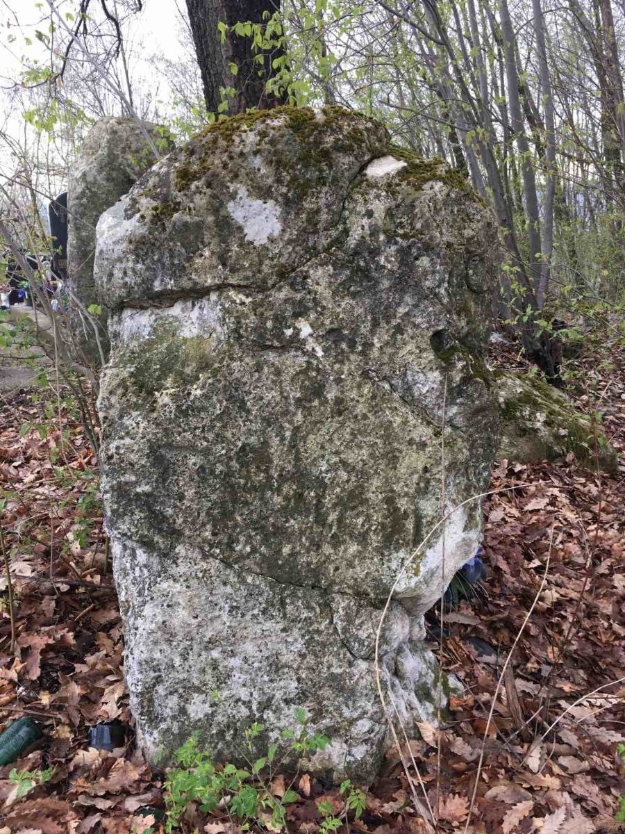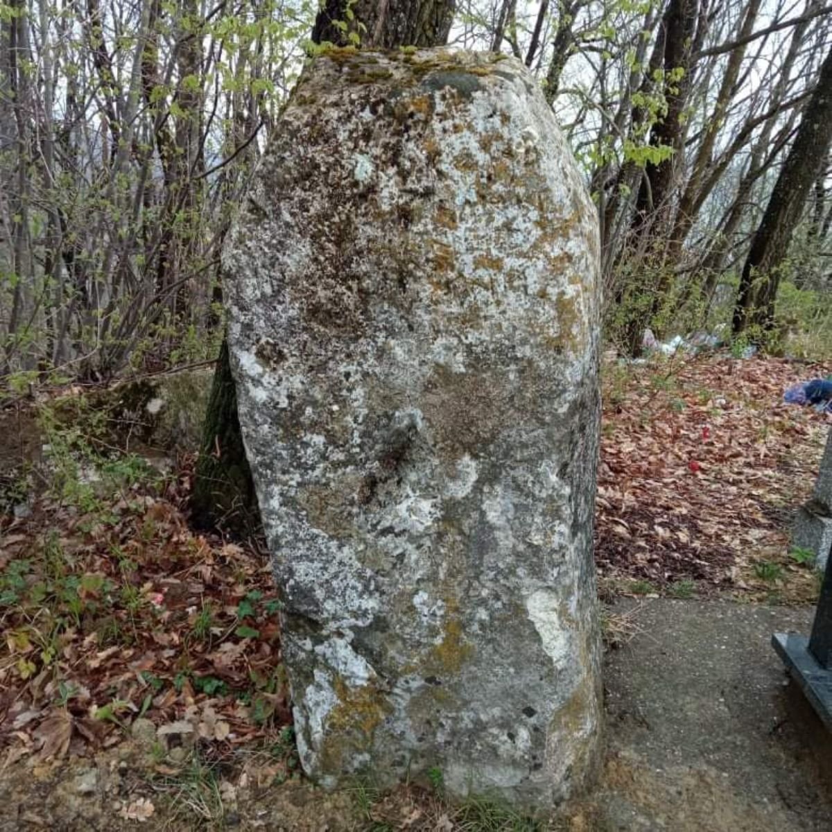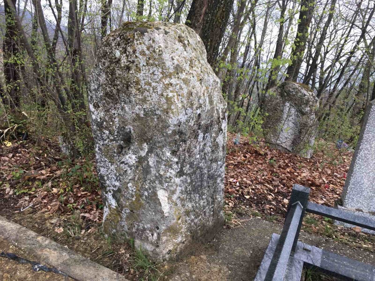 Stećci se nalaze na vrhu brda u šumi gdje je pravoslavno groblje.