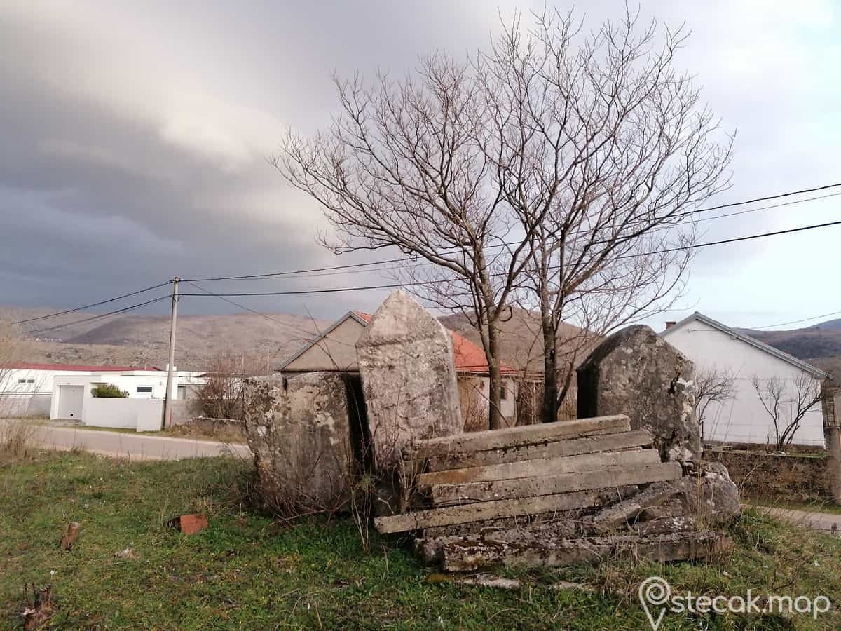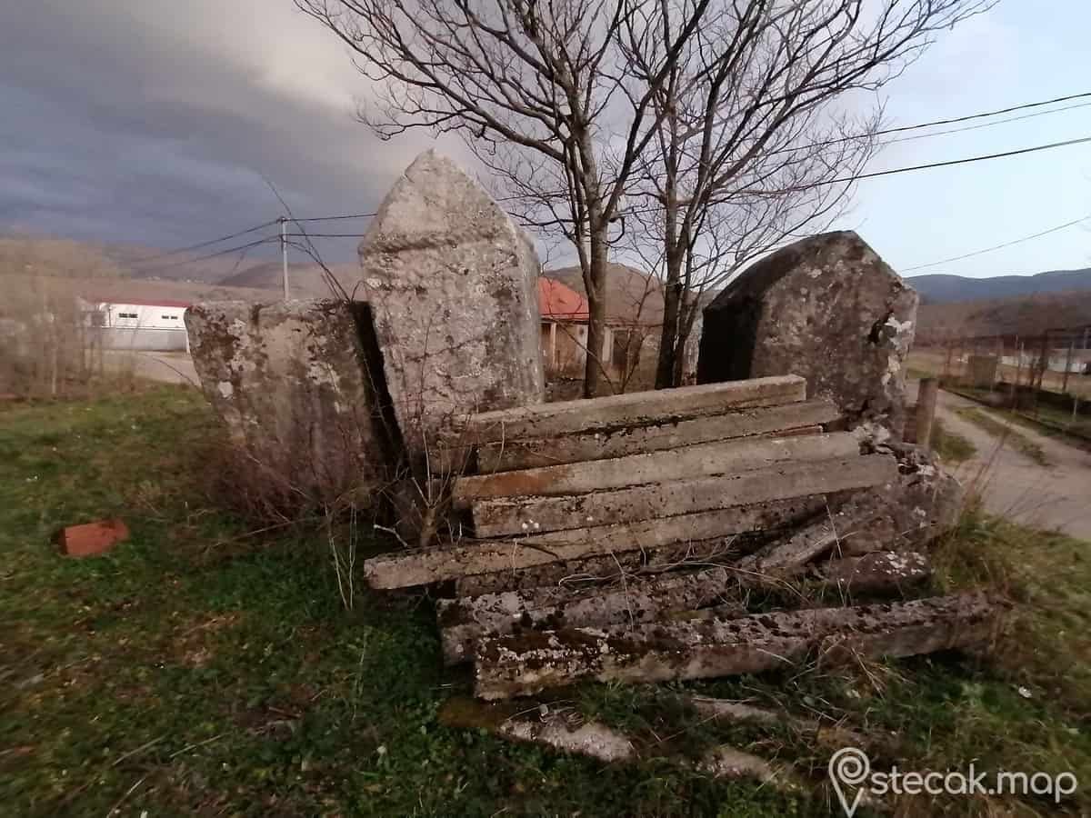 Jako loše. S obzirom na to da su stećci premješteni vidljiva su oštećenja koja su vjerovatno nastala samim premještanjem. Uz stećke je također poredan betonski materijal za gradnju.