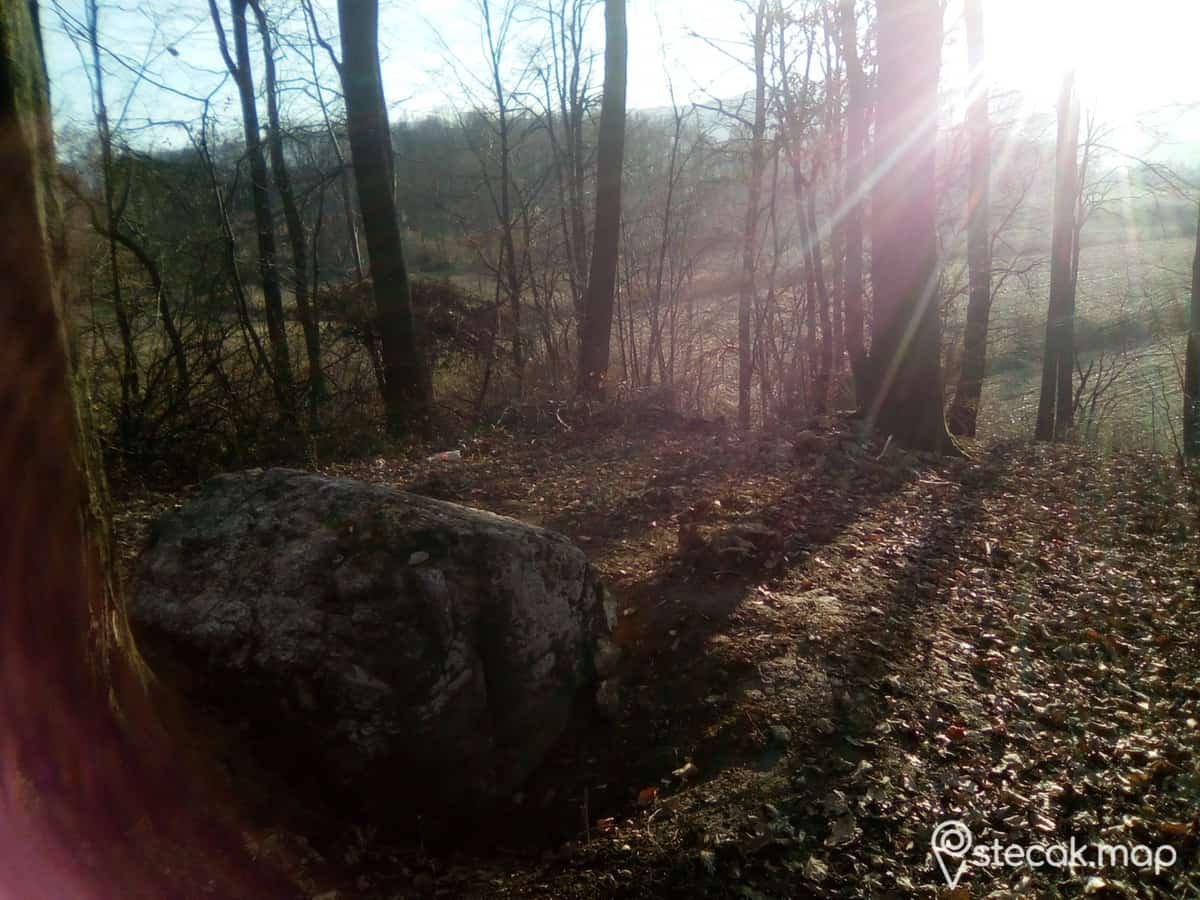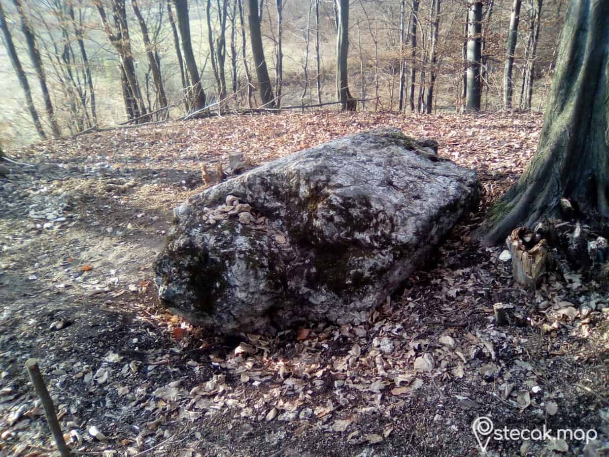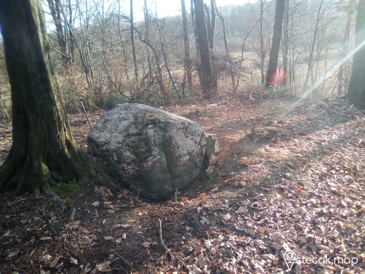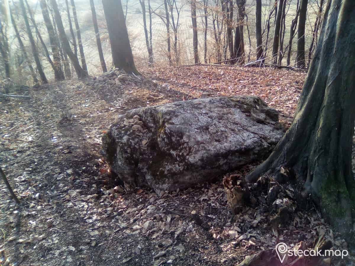 Oko stećka se nalazila velika gomila kamenja koje je donijeto iz obližnjeg potoka.To kamenje je dopiralo do polovine stećka.