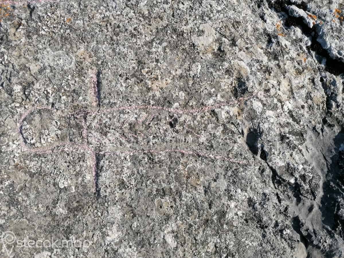 Jedan sanduk je oivičen sa duplim linijama, gdje se u polovici prema zapadu nalazi mač (mač nije kompletan jer je dio stećka oštećen), a u istočnom dijelu je križ.