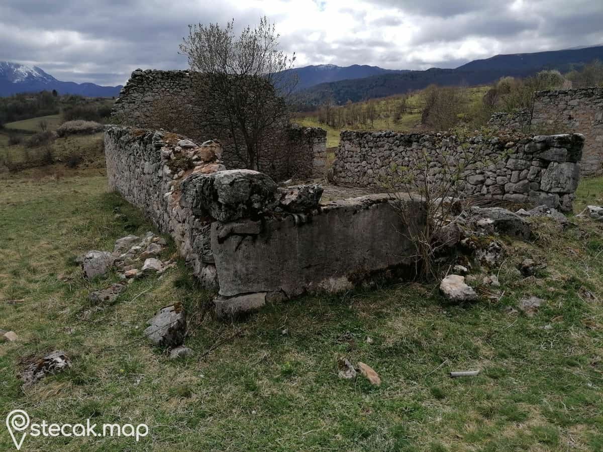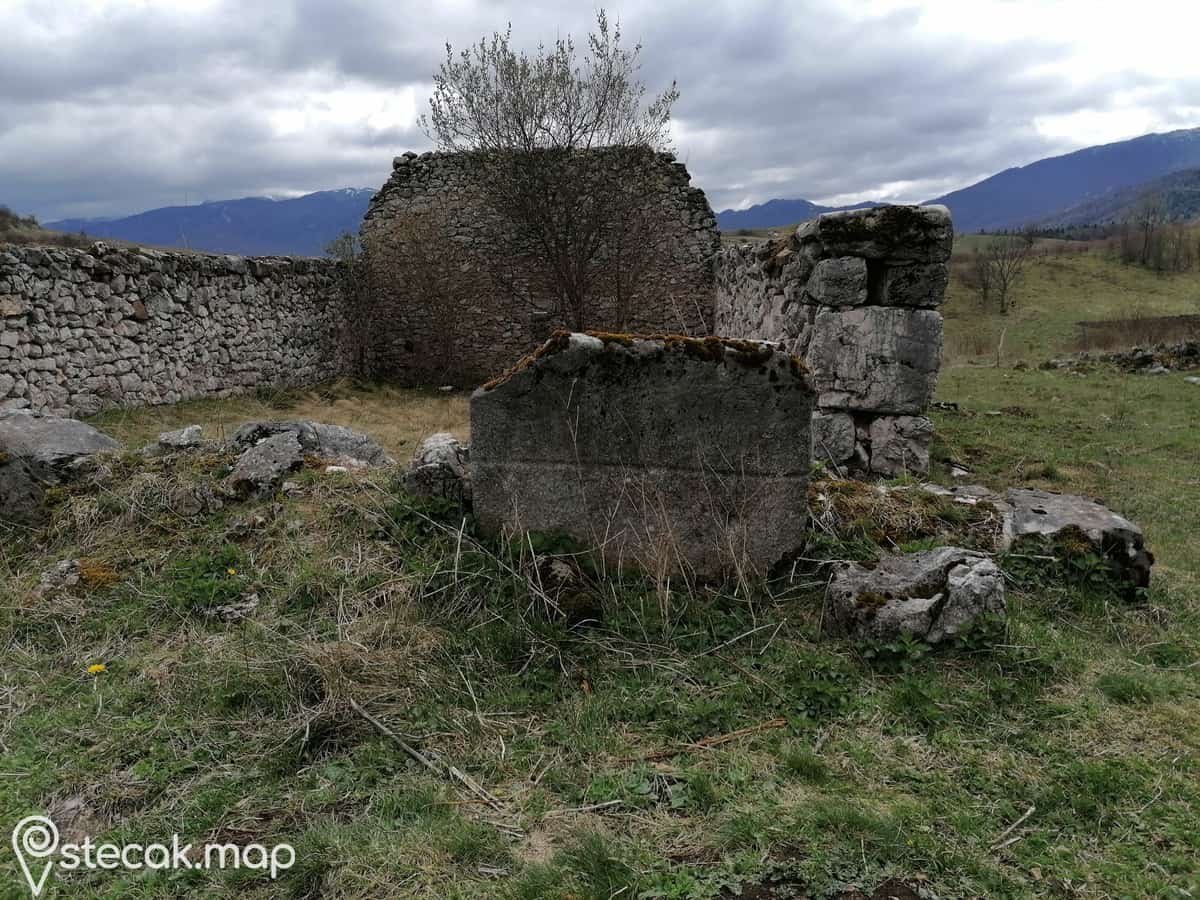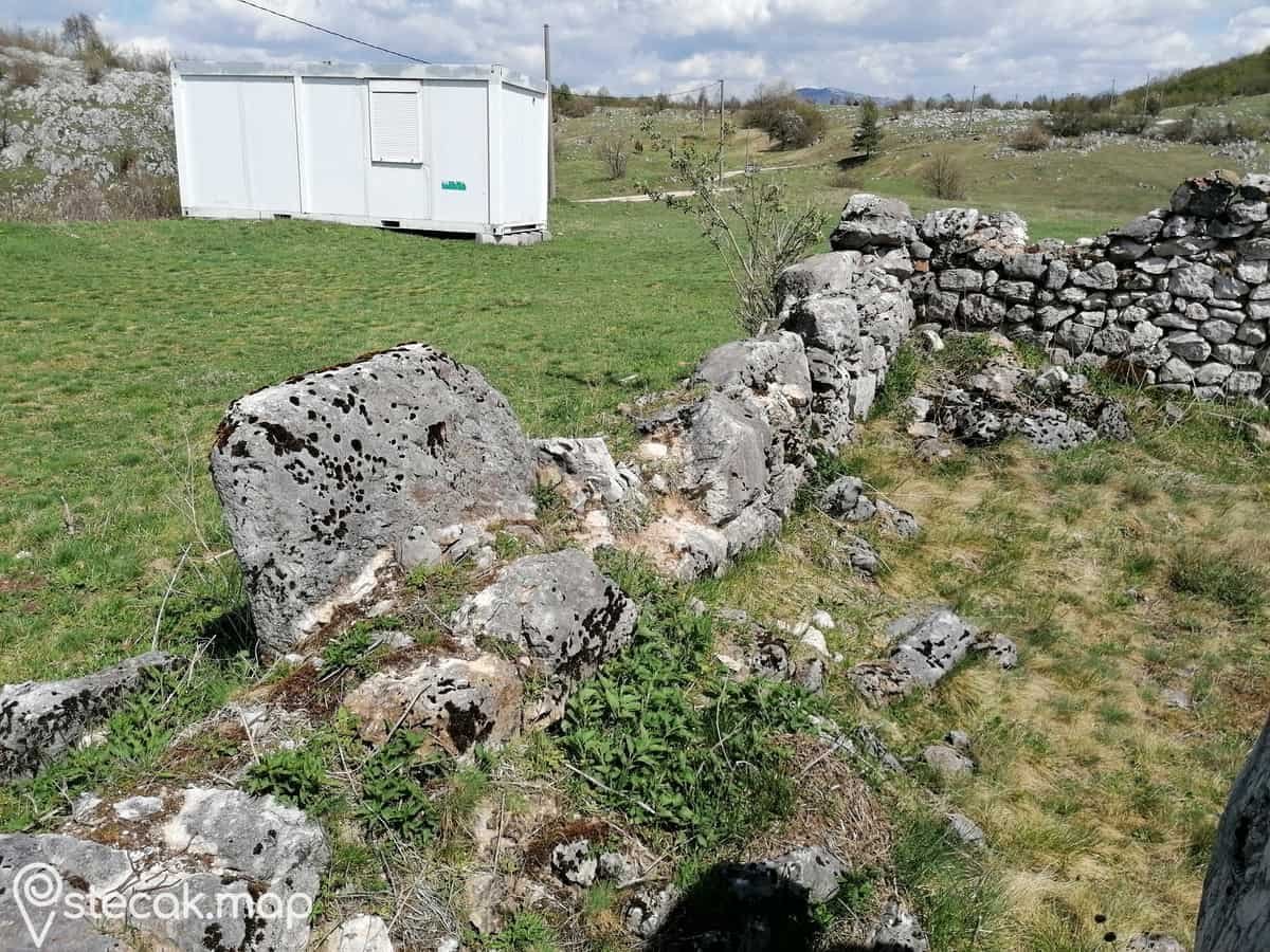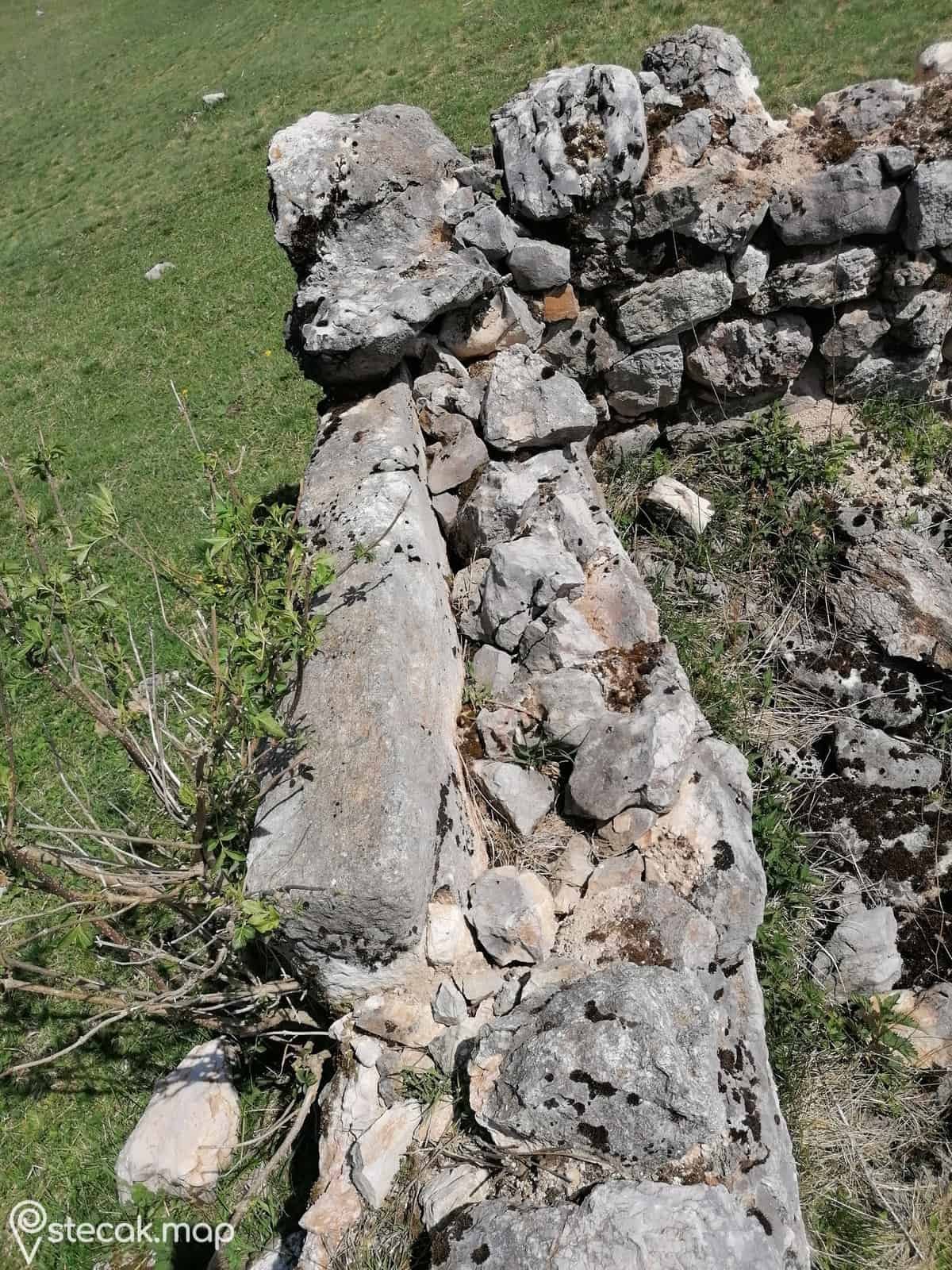 Stećci su iskorišteni kao građevinski materijal u izgradnji stambenog objekta. Na jednoj ploči se vidi uzdužna linija, koja stećak djeli na dva dijela.