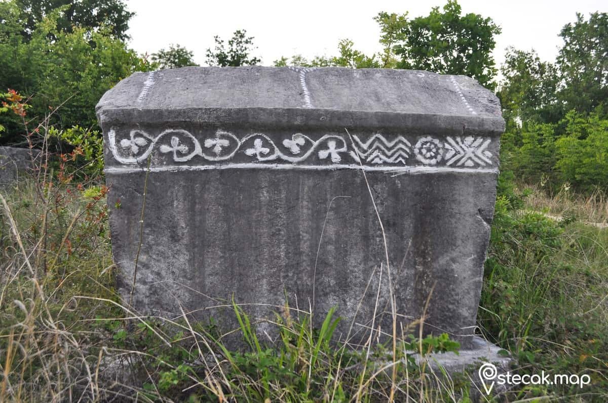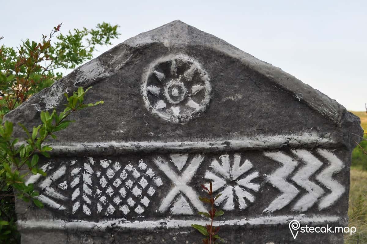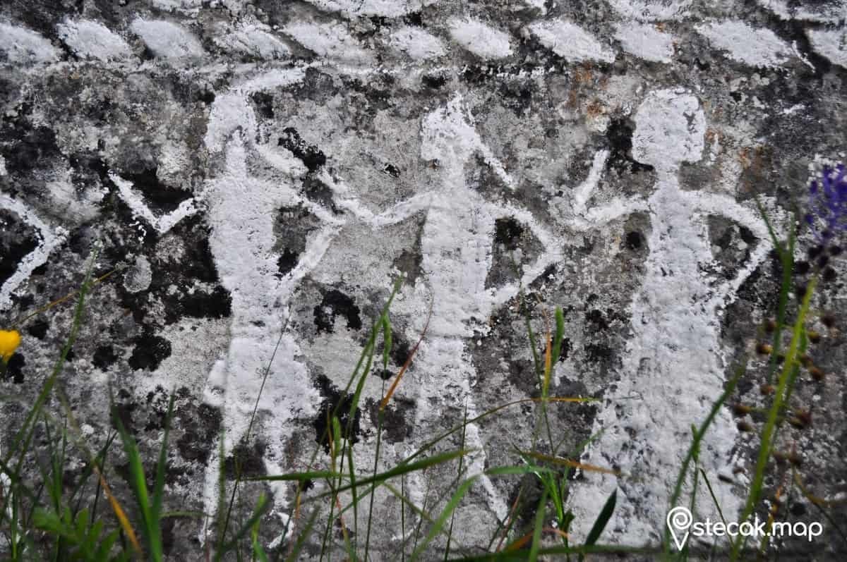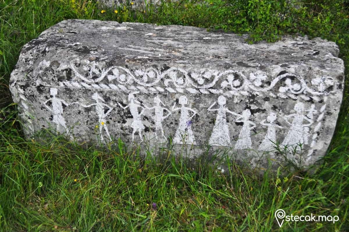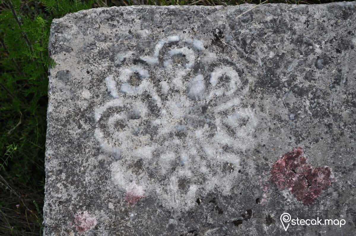 Figuralne scene, bordura od trolisne djeteline, solarni simboli. (U literaturi se spominju i zoomorfni motivi i natpis.)