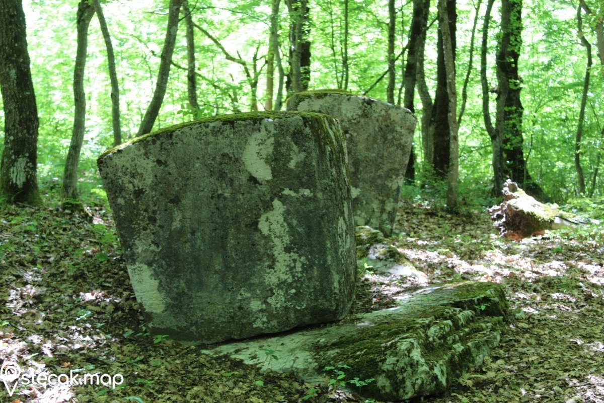 Stećci slijede smijer jugozapad-sjeveroistok. Na dominantnom mjestu nalaze se tri monumentalna stećka sa postoljem (nisu monolitni). Radi se o zasvođenim visokim sanducima. U ostalim slučajevima radi o niskim sanducima, pločama i amorfnim stećcima.