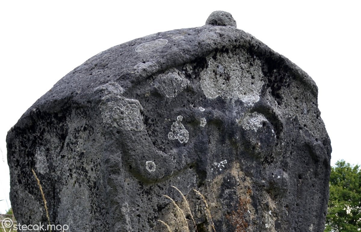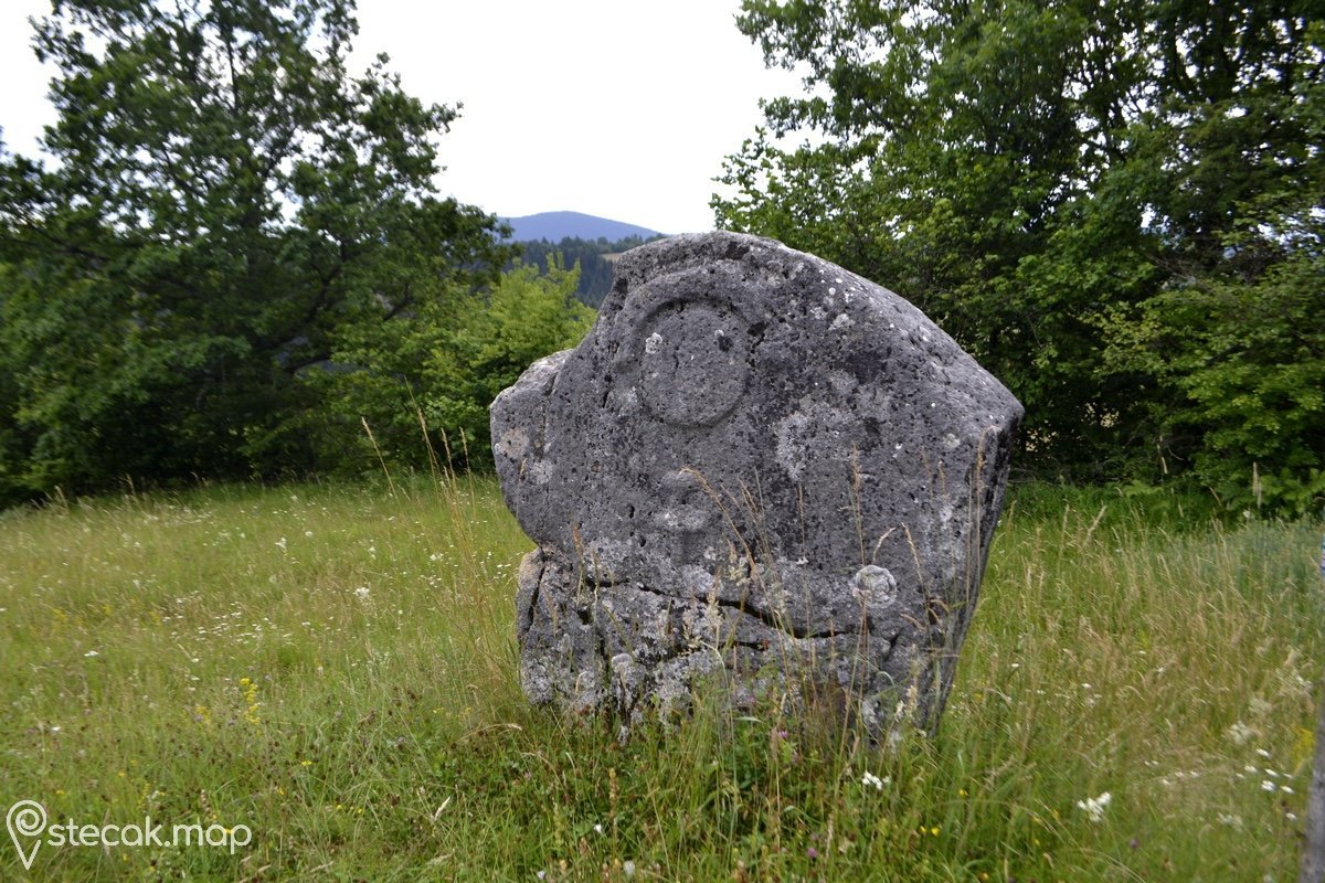 На сјевероисточној страни је уочљив млад мјесец и сунце (круг) у оквиру крака младог мјесеца. Испод тога налази се симбол крста који обликом подсјећа на тау-крст са још једном пречком (двије водоравне пречке).