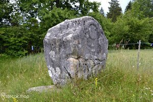 Стећак се налази на брежљуку који се спушта ка југозападу, на излазу из села. Окружен је пољопривредним земљиштем. Оријентисан је у правцу СИ-ЈЗ. Има облик сљемењака, али неуобичајено је велик и има неуобичајене сразмјере. Ширина му је већих димензија од дужине.
